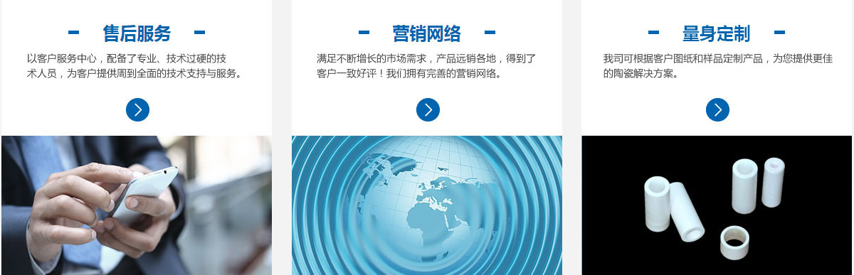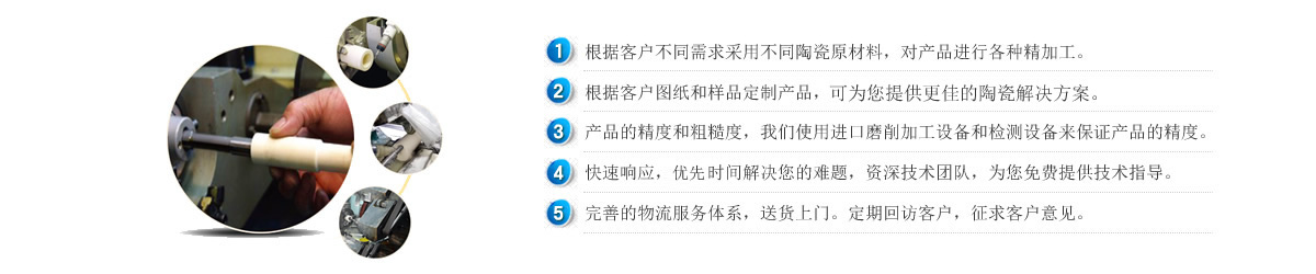 本公司是專(zhuān)業(yè)生產(chǎn)各類(lèi)氧化鋁陶瓷、氧化鋯陶瓷、堇青石、滑石瓷;如:99瓷、95瓷、電子電器、紡織、燈具、儀表、金屬化、發(fā)熱陶瓷等的企業(yè),產(chǎn)品廣泛用于電子、電器、化工、機(jī)械、鐵路、紡織、環(huán)保、熱工、儀表、礦山機(jī)械、郵電通訊等各個(gè)領(lǐng)域,產(chǎn)品具有耐磨損,耐高溫,耐腐蝕,高強(qiáng)度,絕緣性能好等特點(diǎn),深受廣大用戶(hù)好評(píng)。